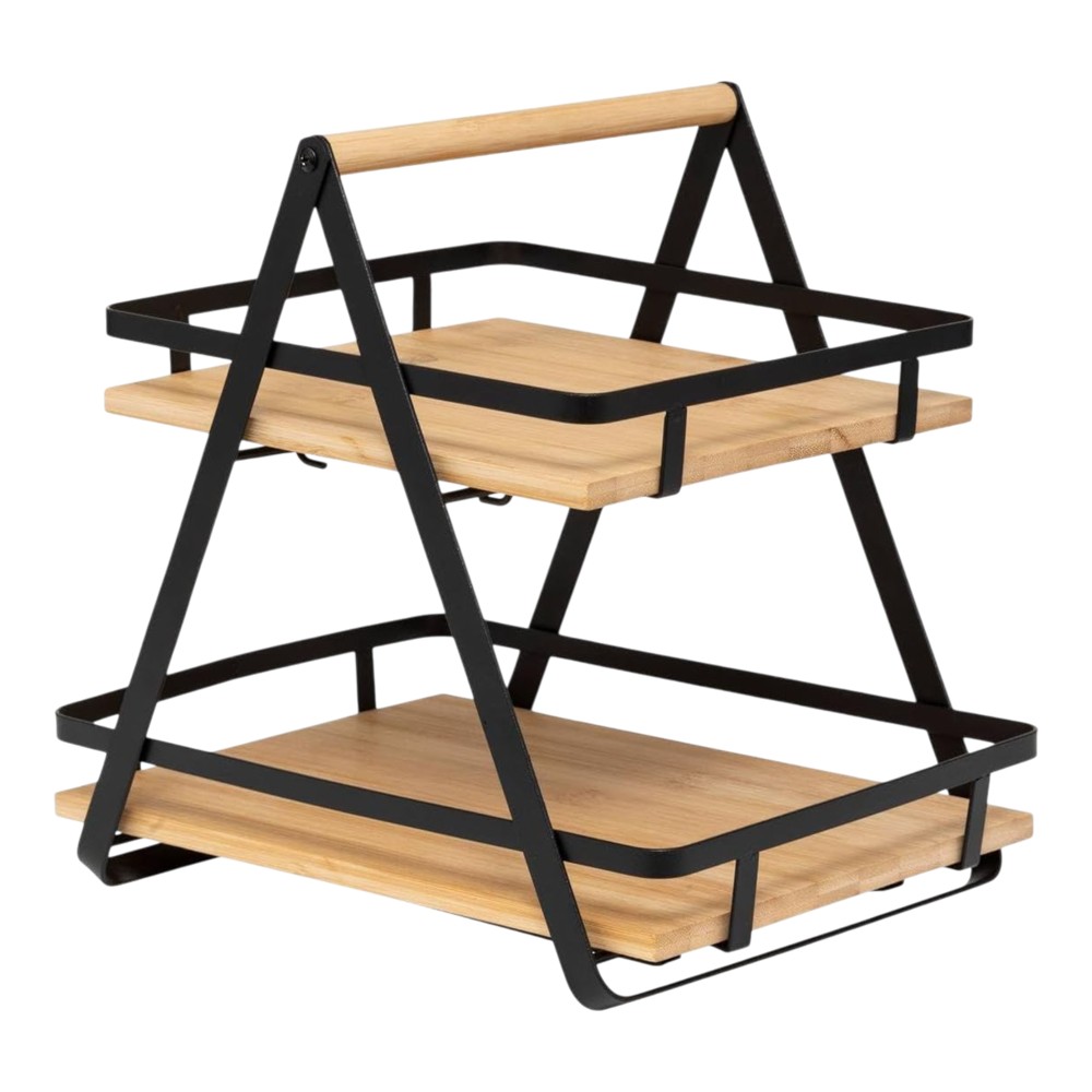 2-tier shelf organizer, steel/bamboo , natural/black, 30.5x22.5x29 cm