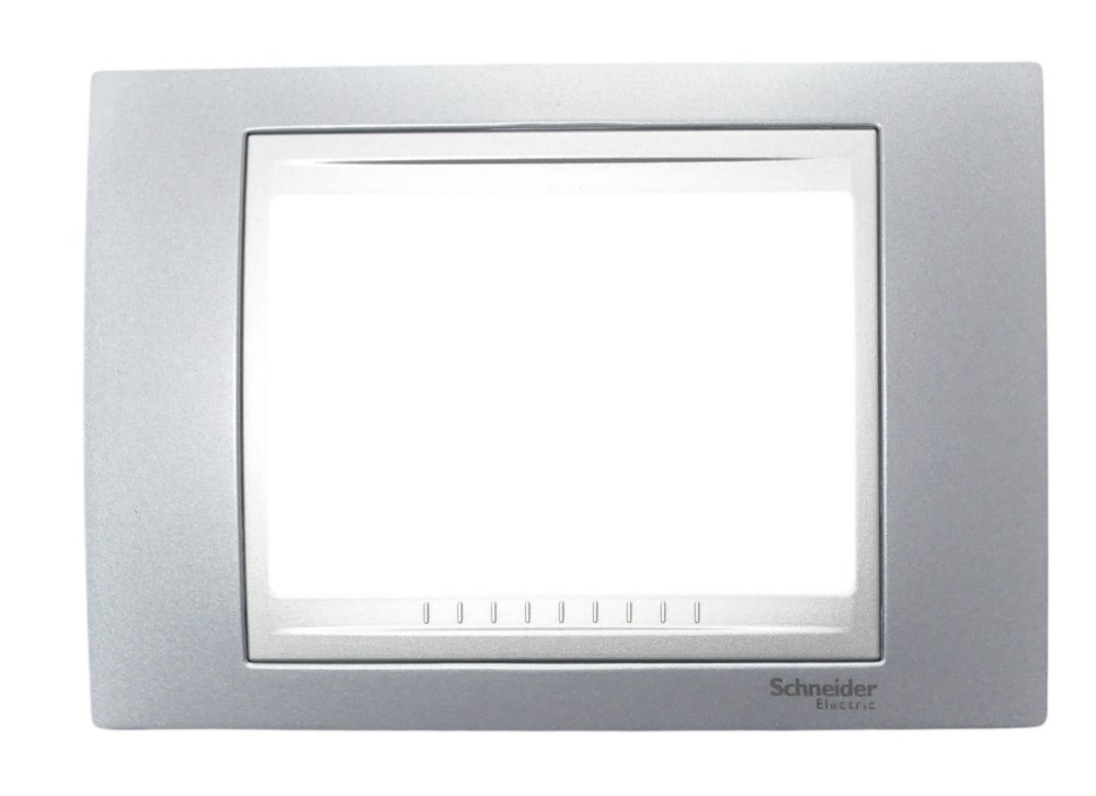Unica Top cover frame from Schneider is a metallic top quality product with aesthetical features. The aluminium color of the frame can be easily combined with every wall color. This cover frame is suitable for only three modules (1 Shuko socket or 1 switches plus 2 bivalent socket).