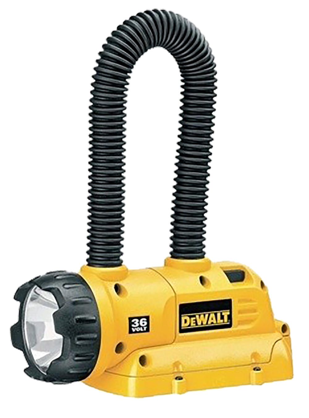 Lockable head clip offers versatility and convenience of a lantern- Flashlight with flexible neck for multi-directional hands-free lighting - Compact, lightweight design with impact resistant housing - 8 hours continuous run time with the 36V Li-Ion battery pack Wide angle beam with metal reflector and Xenon bulb for greater brightness - Can be used free-standing