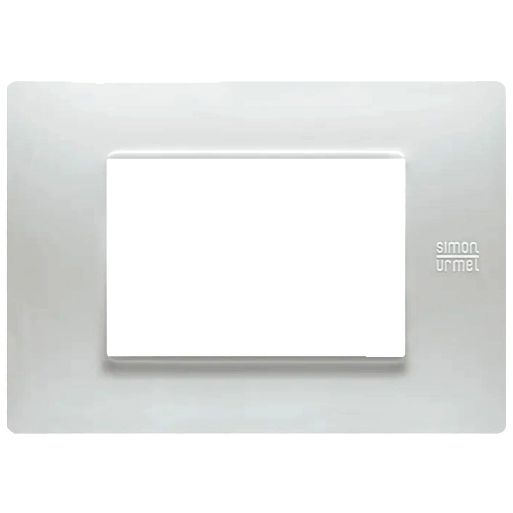 3M cover, white color, plastic, Simon Urmet brand. This cover is ideal for covering empty spaces in 3-module modular frames, providing a clean and functional finish. Made of durable plastic and with a simple design, the cover offers an elegant and clean look, easily adapting to any environment and electrical system.