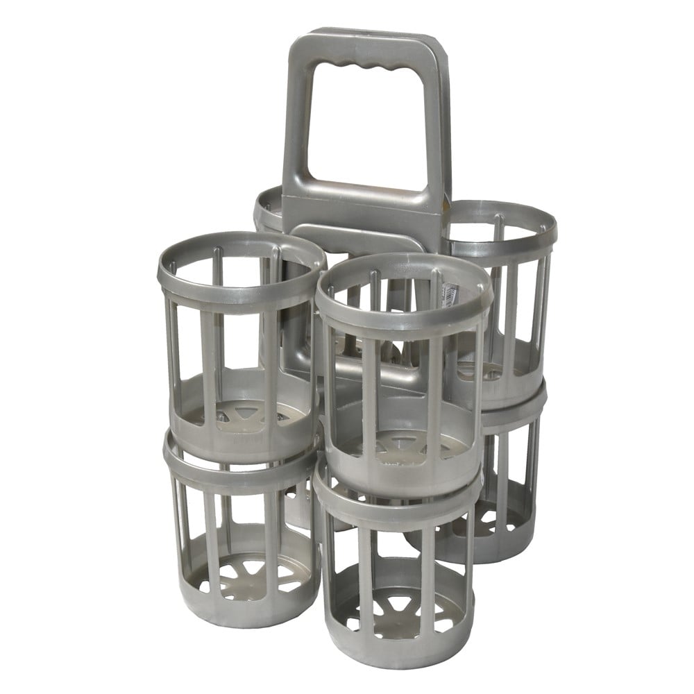 lt bottle holder, with handle, made of resistant plastic material, square in shape, suitable for holding and transporting 1 lt bottles .. Used in homes, restaurants.