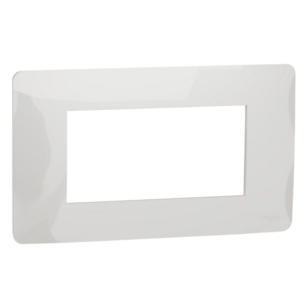 Schneider brand cap, white color, plastic material. It is 4 modular and works only for its schneider line.