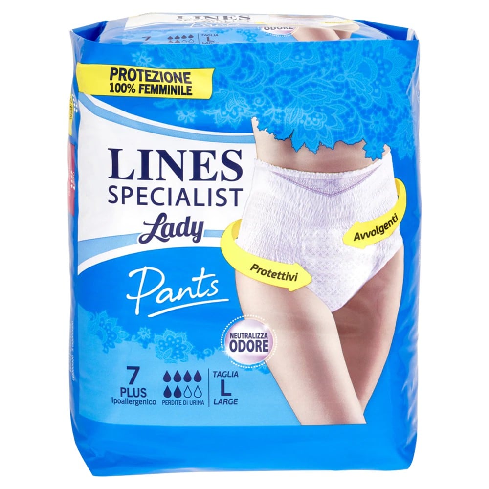 Special lines in the form of underwear, Absorbent Plus 7 pcs, dermatologically tested, they are suitable for both women and men. The absorbent core captures fluids quickly and keeps them away from the skin. Its side barriers help prevent spills where you need them most. Dual odor control technology is designed to trap and neutralize odor. Pants Lines Special, are delicate in contact with the skin thanks to their soft fabric and zinc oxide. Suitable for all times of the day, both day and night. Contents: 7 pieces.