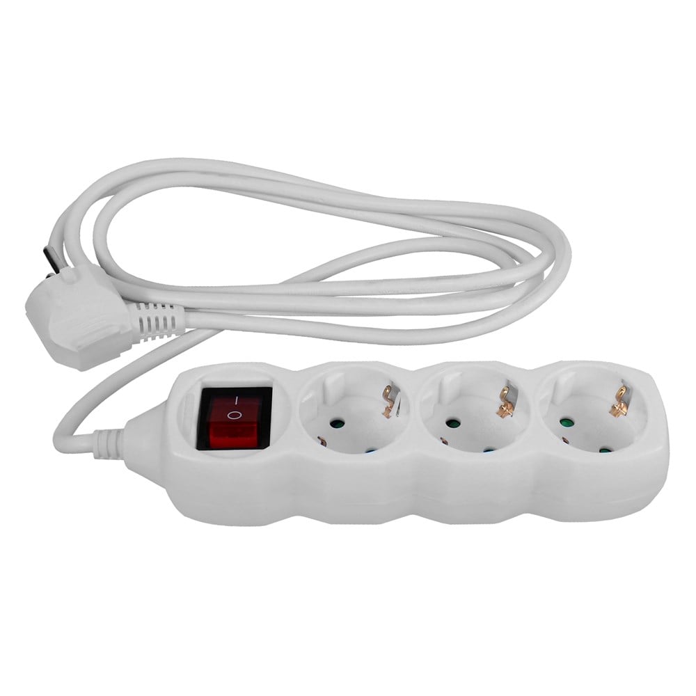 power supply extension cords (schuko type) • 3 sockets + switch • ~230 V/10 A max • length 2 m • packaging: 1 pc., plastic bag • carton quantity: 1/10/40 •