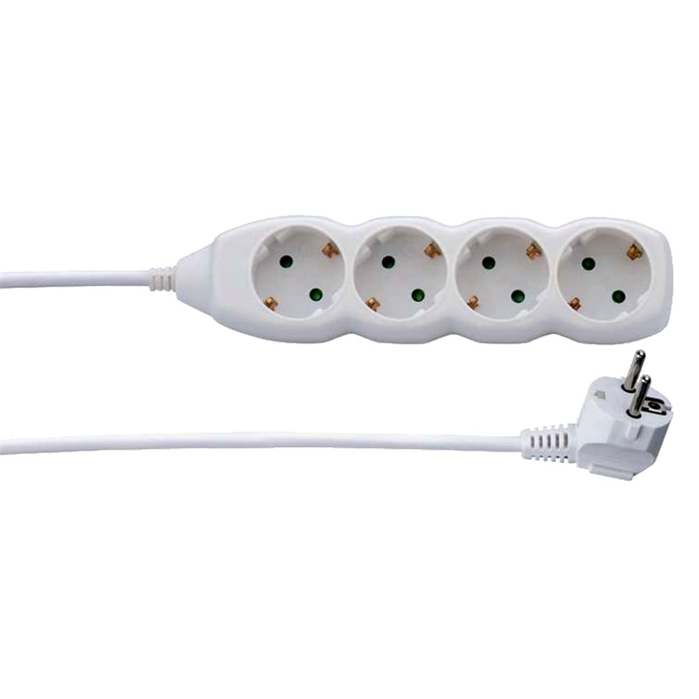 4 sockets connected to 3m of mains cable. Complete with a fitted 10A mains plug.An excellent value model. Simple to add more sockets right where you need them. A handy 3m length of cable ideal for use in offices and houses.