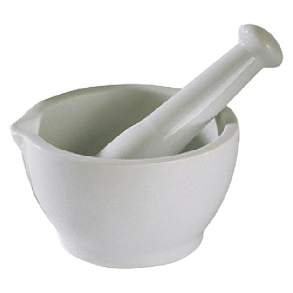 Accessory for mixing and kneading pigments, mortars and resins in powder for the professional creation of colors or compounds for painting. The porcelain mortar has a diameter of 12 centimeters and a height of 5.5 centimeters with a spout for pouring and an anatomical pestle.