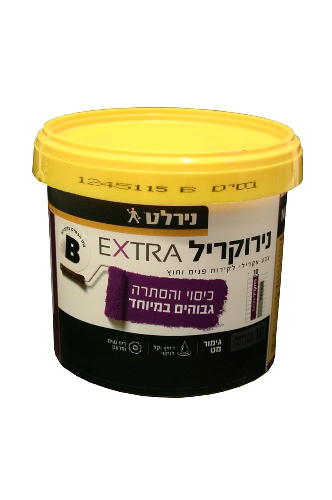 Acrylic paint Nirocryl white acrylic paint Base B 1 L. A superior quality water-based matt acrylic paint with high opacity and high spread rate. Intended for painting interior and exterior walls. Creates a particularly velvety finish giving the walls of a house a smooth, fresh and elegant appearance. Durable over time and retains its new look. Meets the exterior durability requirements of the Israeli Standard Mark 1945. Properties: Excellent wet opacity (opacity visible immediately during the application). Good resistance to wash, scrub and mechanical abrasion. Not spattering during the application, particularly easy when painting ceilings. Excellent leveling and flow properties, easy to work with. Typical Uses: For painting interior and exterior walls, plaster, concrete, cement boards, plaster boards and more after a suitable preparation of the surface. Surface Preparation: Clean the surface well to remove any foreign material such as old whitewash, dust, peeling paint, grease etc. Make sure the existing paint left on the wall is firmly attached to the surface. Remove loose paint with a spatula and sandpaper. Repair the surface if needed with Gold Bond American Putty, Maximo Crack Filler or Altek Violet, after drying sand to obtain a smooth and homogenous surface. Apply a suitable primer such as Primer S for interior walls and Bonding Primer for exterior. To fix and strengthen sandy or old surfaces apply Primer X. Application: Stir the paint well before use. Apply by a brush, roller or a sprayer in 2 coats. Await 2 hours between coats (under regular weather conditions). Do not apply when the temperature is below 7 °C. Colour: Extra White + shades of the Nirlat Colour Is or RAL fan deck. Finish: Matt. Coverage: 13 m²/L in 2 coats (in full opacity). Dilution: with water, 20 % first coat, 10 % second. Cleaning of hands and tools: with soap and water immediately after use. Dry time: To touch: 1 hour. To recoat: 2-3 hours. Full cure: 24 hours.