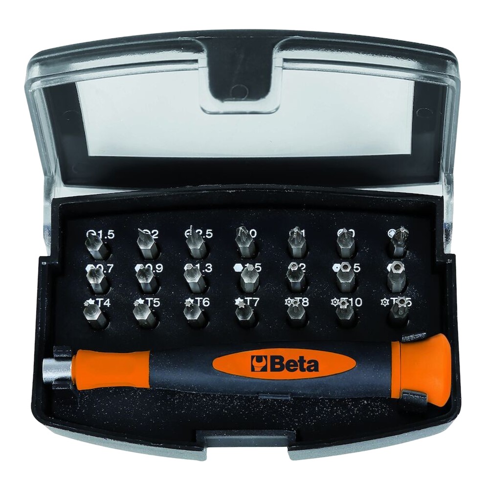 Ideal for tightening and loosening screws of different standards. The magnetic adapter ensures stable and efficient use of screw heads by hand. Built from the highest quality steel. With excellent resistance to twisting stresses and degradation that comes as a result of work. Professional, high precision accessory. The set contains: S1.5, 2, 2.5 mm, PH0, 1, PZ0, 1, HEX 0.7, 0.9, 1.3, 1.5, 2, 2.5, 3 mm, T4, 5, 6, 7, TH8, 10, 15,