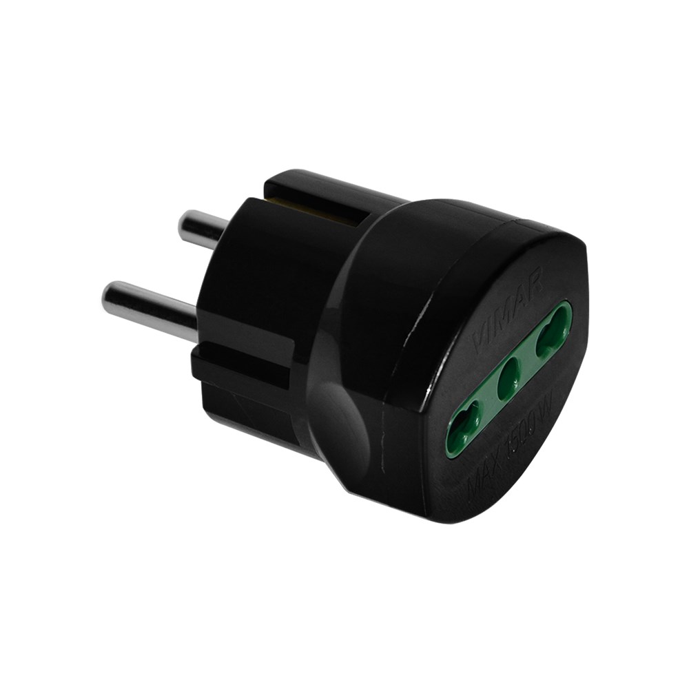 To adapt plug with sockets adapter are a very practical solution, plastic compounds and copper material.