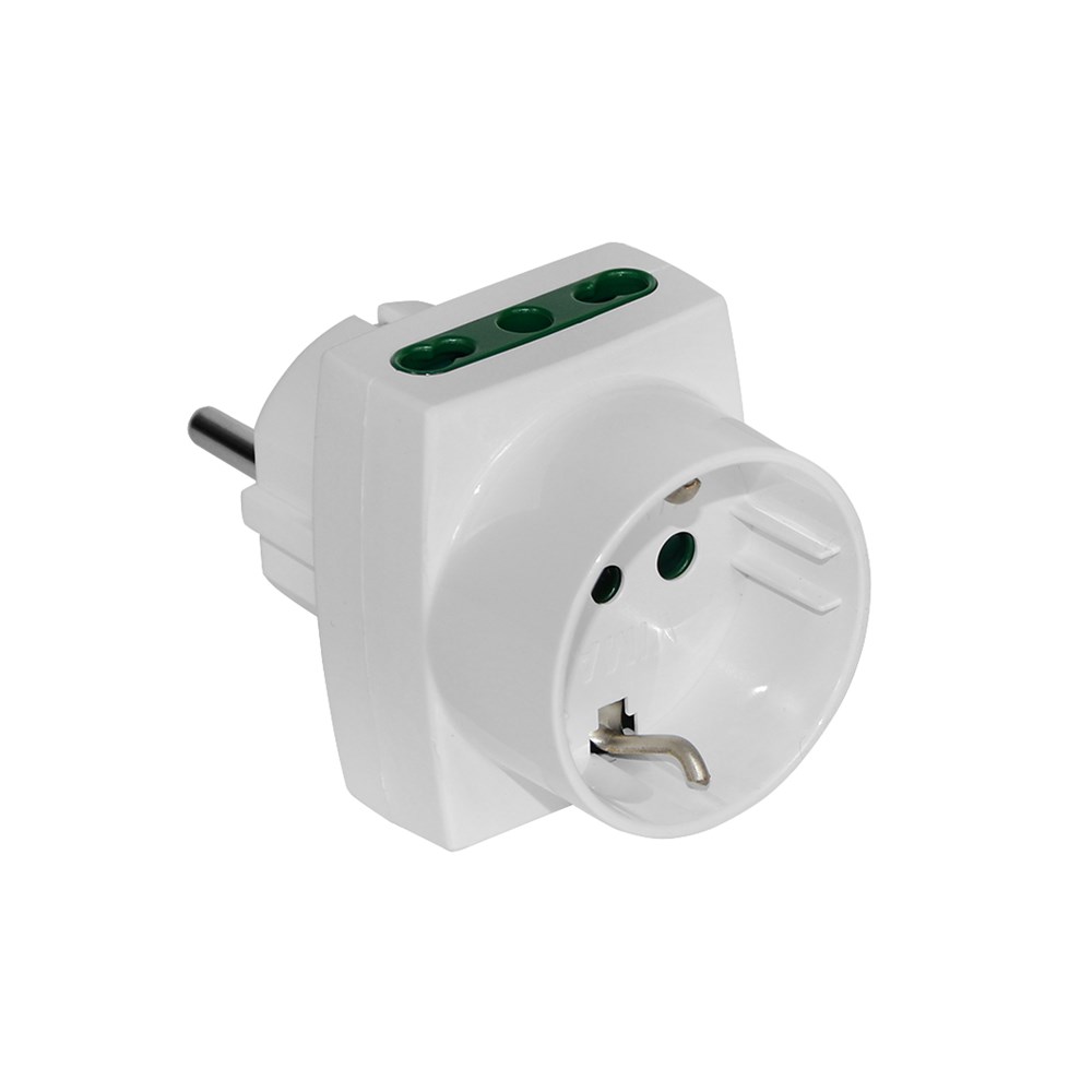 To adapt plug with sockets adapter are a very practical solution, plastic compounds and copper material.