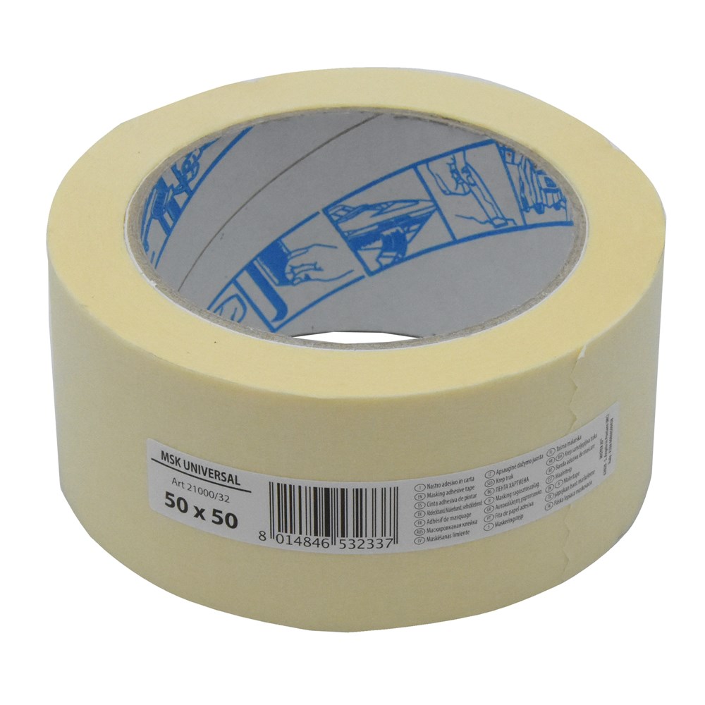 Adhesive masking tape for professional use. Solvent adhesive. Excellent performance. It reresist to 60 grade C (to 80 grade C for one hour). Sticks to many surfaces and removes cleanly with no residue.