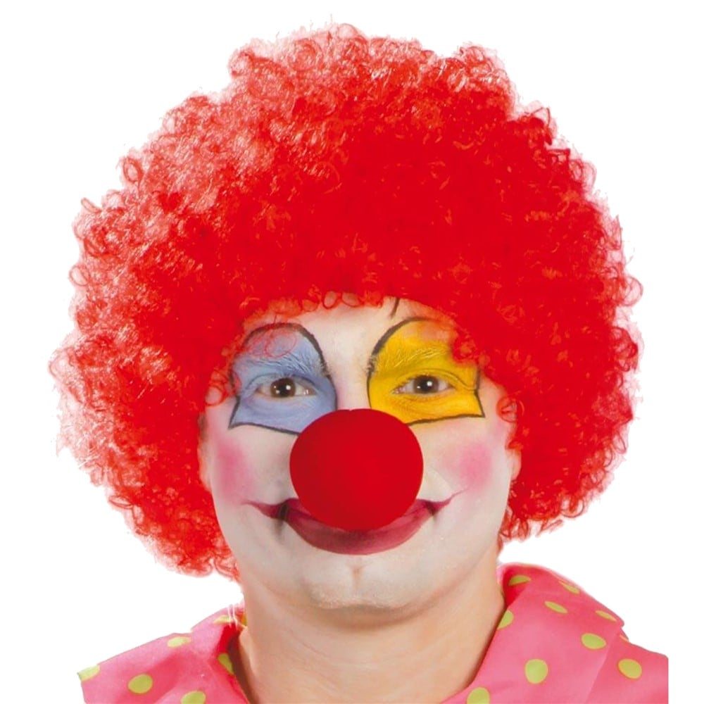 Curly wig with synthetic material, in red color. Suitable for use by adults on birthday parties.