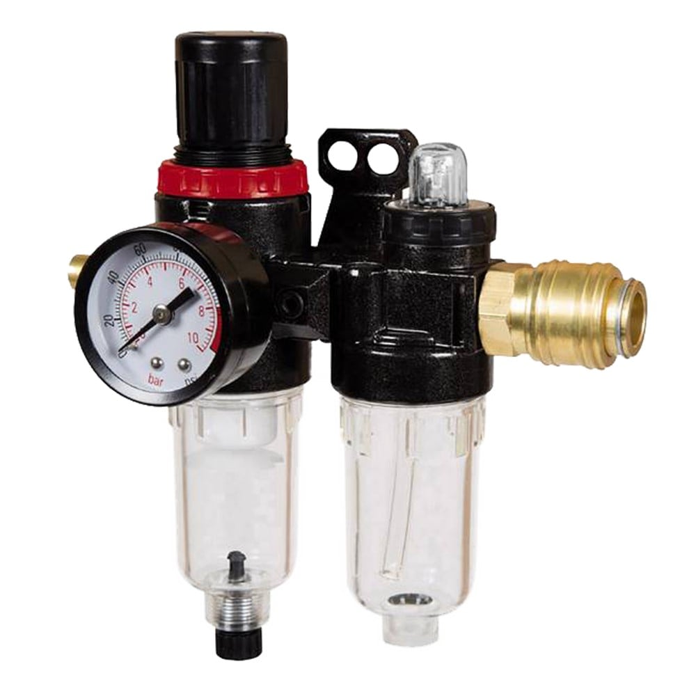 Ideal for outlet use of the air compressor. Provides passage of water microparticles which cause great damage to air tools over time. Microparticles which are created as a result of condensation due to the temperature difference between the inside and the outside of the compressor. Creates the possibility for lubrication of tools with pneumatic oil. Oil which is very necessary to avoid friction between the gears and their consumption over time. With pressure regulator, it serves both as a filter and as a pressure regulator that drives the mechanisms of operation of the air.