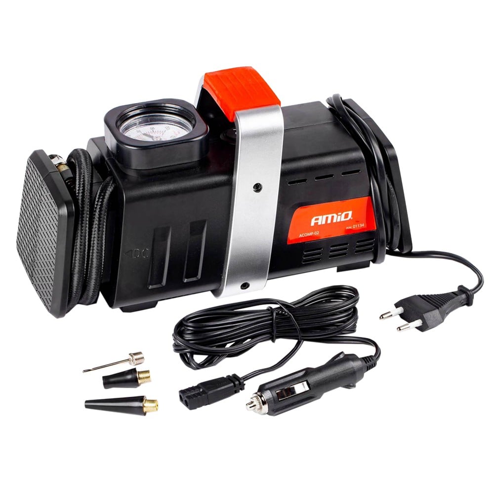 Air compressor for car, AMiO, DC 12V, AC 230V, 150PSI, 10bar