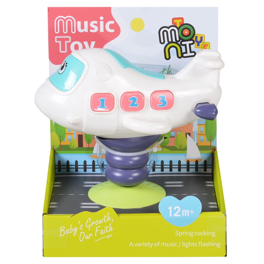 Plane toy for children, with music, 12 months +. The game is equipped with a variety of buttons and music lights. This product contributes to the easier recognition of different shapes and colors by the child, in the development of his perceptions and intelligence auditory and visual.