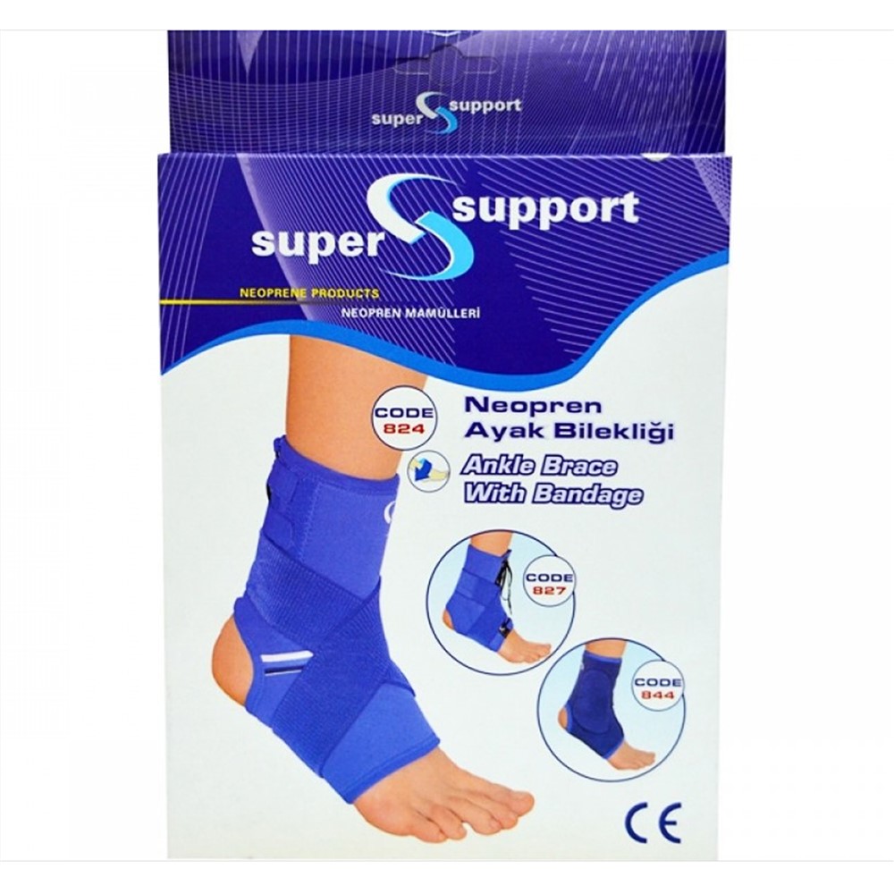 Ankle brace with bandage, which is made from 3 mm neoprene material. This ankle support also features a heel cut-out and provides compression for ankle sprains and soft tissue injuries.