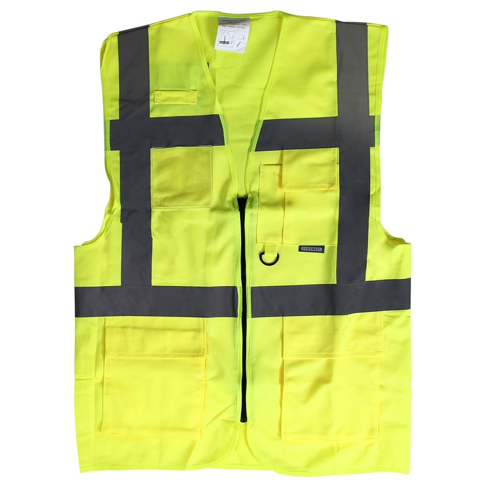 Revolutionary in its design, the executive vest combines the light weight of a waistcoat with the practicality of pockets for those situations when a jacket may be too warm. A clear ID pocket for security passes and cards compliments this unique garment. With many companies and their operatives now using combinations of hivisibility orange and yellow fabrics together, these contrasting styles are in increasing demand for many customers.