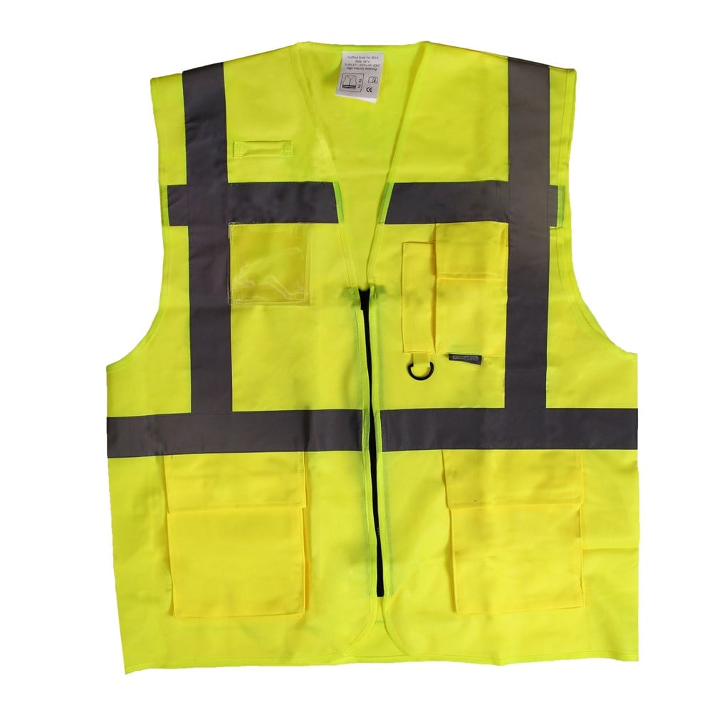 Revolutionary in its design, the executive vest combines the light weight of a waistcoat with the practicality of pockets for those situations when a jacket may be too warm. A clear ID pocket for security passes and cards compliments this unique garment. With many companies and their operatives now using combinations of hivisibility orange and yellow fabrics together, these contrasting styles are in increasing demand for many customers.