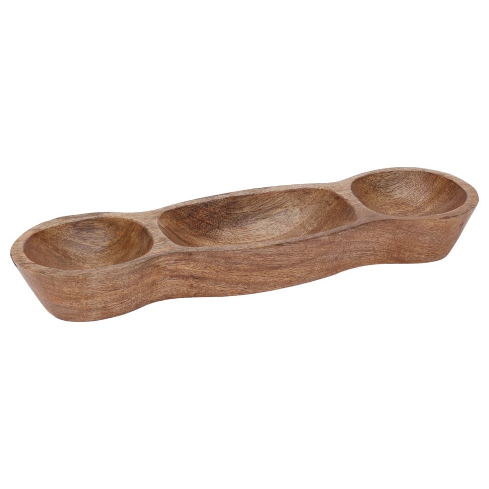 The brown wooden antipasti plate measuring 39x12 cm is an elegant and functional accessory for serving small foods, such as cheeses, hams, dried fruits or various appetizers. Made of quality wood, this plate brings warmth and rustic style, giving a natural and welcoming look to your table. The elongated shape and simple design make it suitable for both everyday serving and festive occasions. Resistant and easy to clean, it is the ideal choice for those who want to combine aesthetics with functionality in the kitchen.