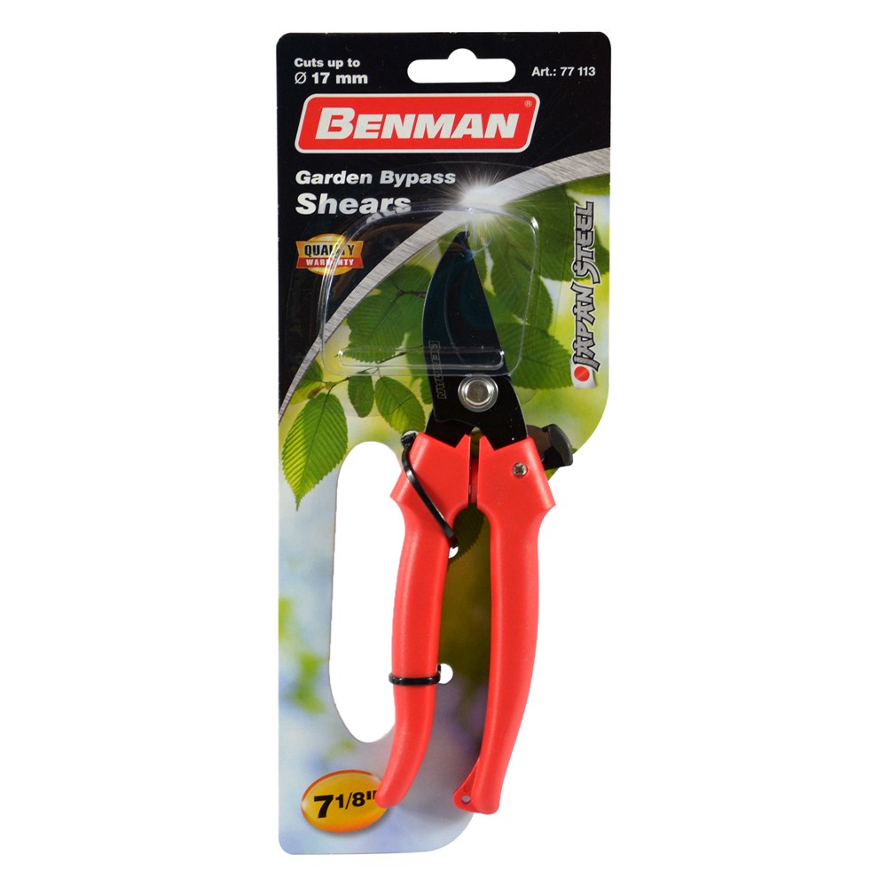 BY-PASS GARDEN SHEARS, BENMAN, 7-1/8'' one of the most widely used and highly robust products in the world of professional wine, fruit and horticulture. In contrast to the bypass shears, where the blade and the counter blade pass each other, the anvil shears the blade on a solid support, the anvil. This principle has, inter alia, The following advantages: