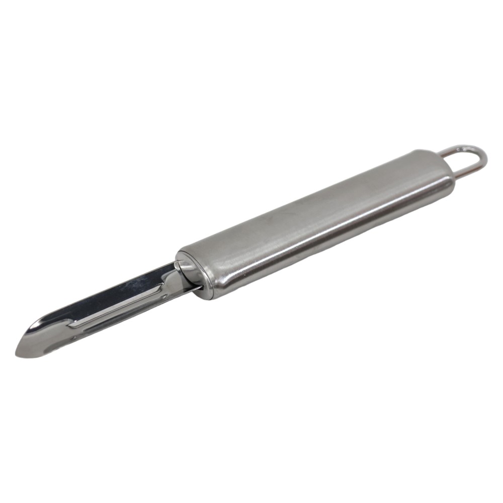Practical peeler for removing cores and seeds from apples or similar fruits, made of stainless steel in silver color, length 18 cm
