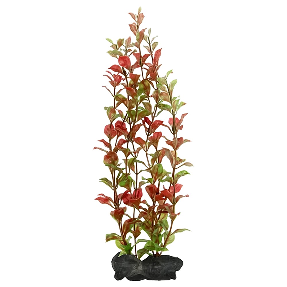 A natural looking artificial plant. Red Ludwigia, also known as water primrose, is especially famous for its red and green leaves. It is not only an excellent decoration for the aquarium, but also creates an ideal shelter for fish. The stone at the base holds the plant in the substrate, making it stable and stable. It is suitable for any type of aquarium.
