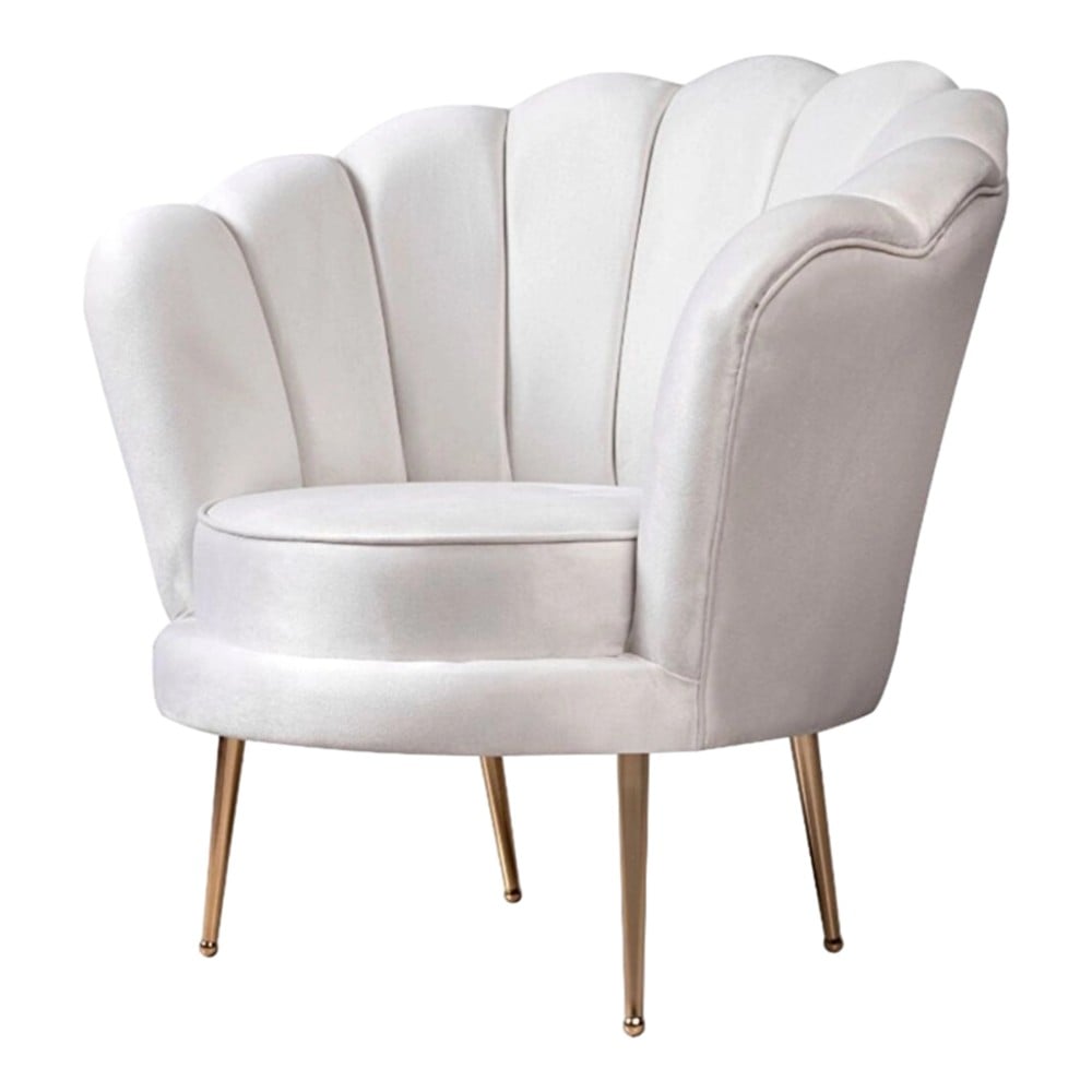 Armchair, Papatya, velvet upholstery, metal legs, cream/golden, 85x80xH85 cm