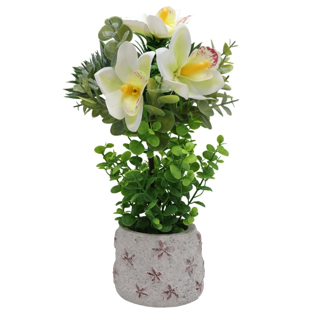 A touch of elegance and freshness in any environment, this white artificial flower is ideal for those who seek the beauty of flowers without the commitment of maintenance. Made of quality plastic material, the flower offers the natural appearance of a fresh bloom, which will maintain its beauty and color for a long time. With dimensions Ø10 cm and a height of 30 cm, this white flower is suitable for placing on tables, bedside tables, shelves or as a decorative element on windows. Placed in a simple and elegant pot, it makes it easy to integrate into any interior style.