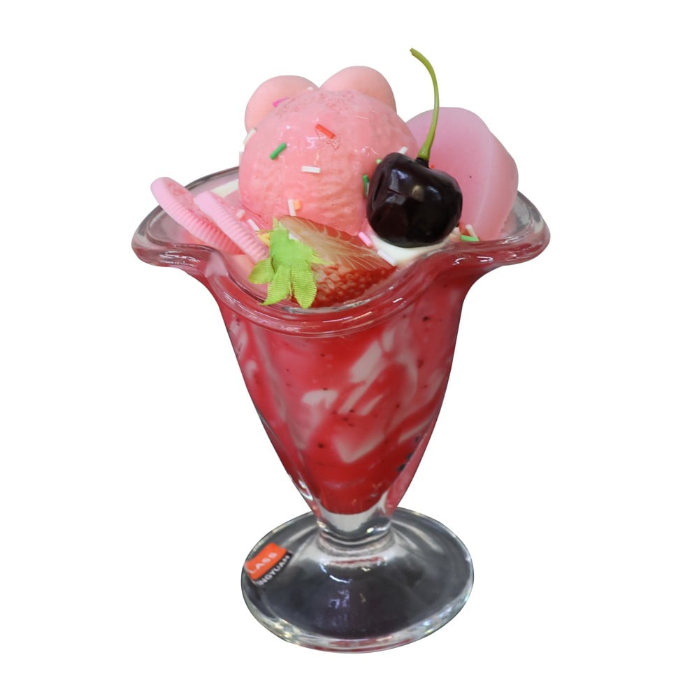 Artificial ice cream, with glass, 13x9 cm, pink, 1 piece