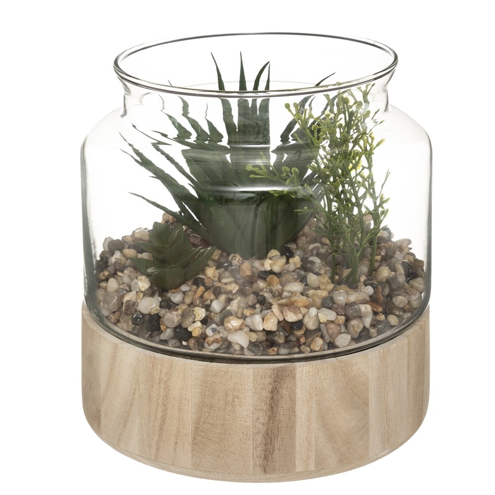 Artificial plant, glass pot, paulownia/glass/stone, clear, Ø15.8 xH17.5 cm