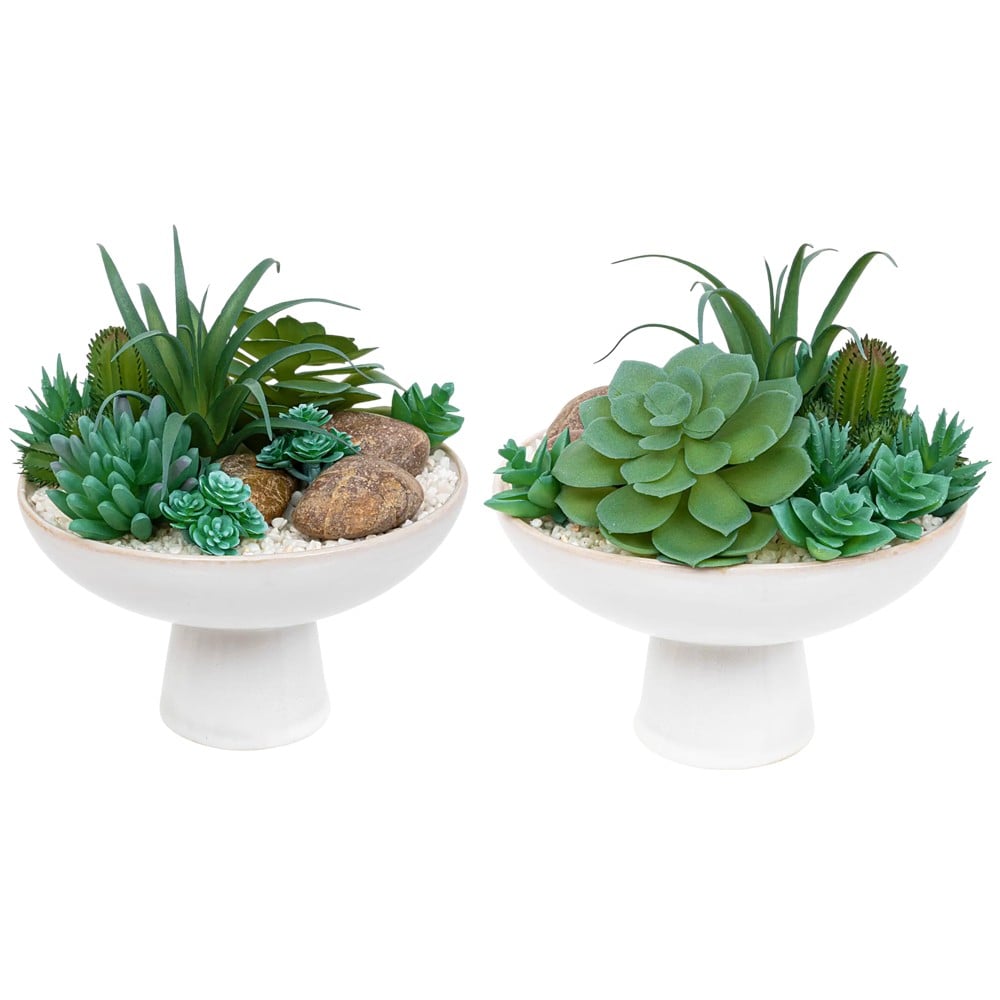 Artificial plant, in pot, Soleya, ceramic/plastic, white/green, Ø19xH20 cm