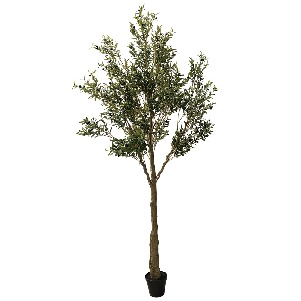 A choice that brings freshness and style to any environment, this artificial olive tree has been carefully crafted to mimic the look of a real olive tree as realistically as possible. With leaves in shades of green, it stands on a modern black vase and reaches a height of 300 centimeters. An elegant and maintenance free accessory that easily adapts to both indoor and outdoor spaces, giving every corner a calm and natural atmosphere.