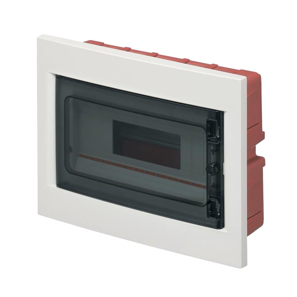 In-wall automat box, IP40, 12M, white. 12 modular in-wall vending machine boxes are widely used in civil and industrial environments. In addition to the functional aspect (isolation and grouping), the possibility is created for the specialist or family user to intervene as needed in the electrical network. The box is equipped with a transparent cover creating the possibility of monitoring and has an elegant design.
