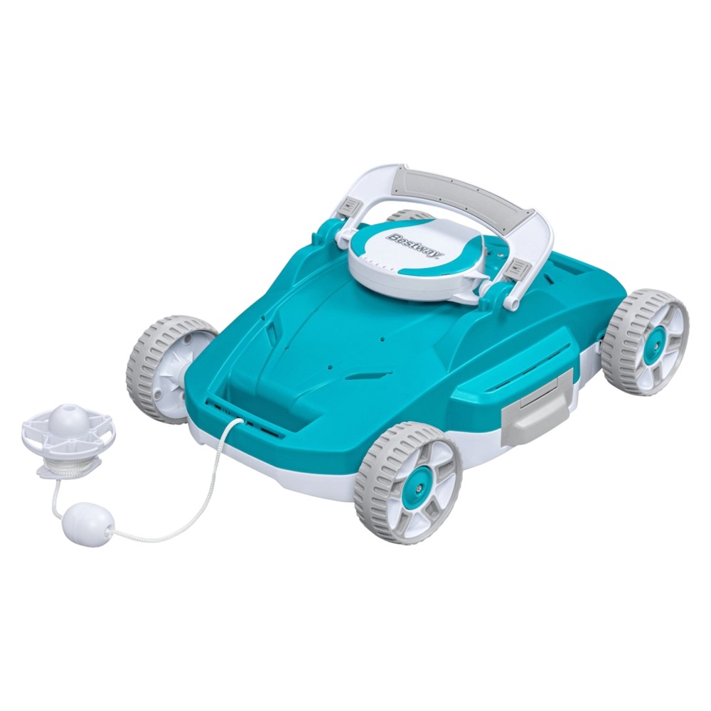 "Bestway's AquaTronix G200 Pool Robot cleans your pool floor automatically. Simply immerse the device in water to turn it on. On encountering walls or other obstacles, it automatically changes direction thanks to a patented jet system. This increases the efficiency of the cleaning process.