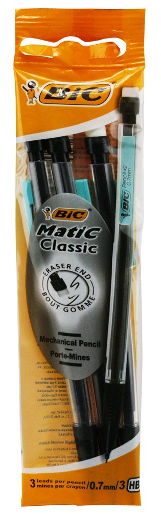 This is a new mechanical pencil with rubber built with feed system side of the tips that allows writing without interruption. It has a comfortable rubber grip and is equipped with 3 mines of 0.7HB.It writes 2 x more than graphite pencils.