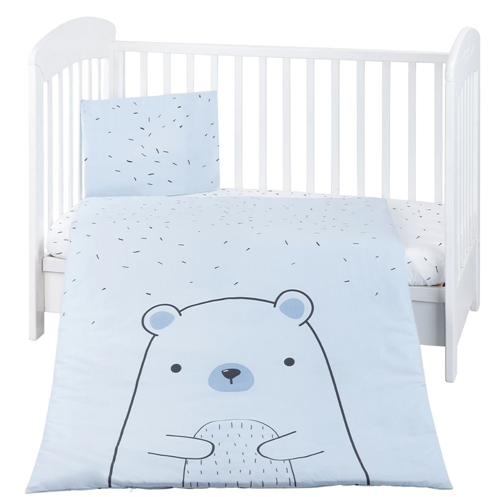 Baby duvet cover set, Kikka Boo, Bear, cotton, pillowcase 35x45 cm, duvet cover 100x150 cm, duvet cover 95x135 cm, blue, 3 pieces