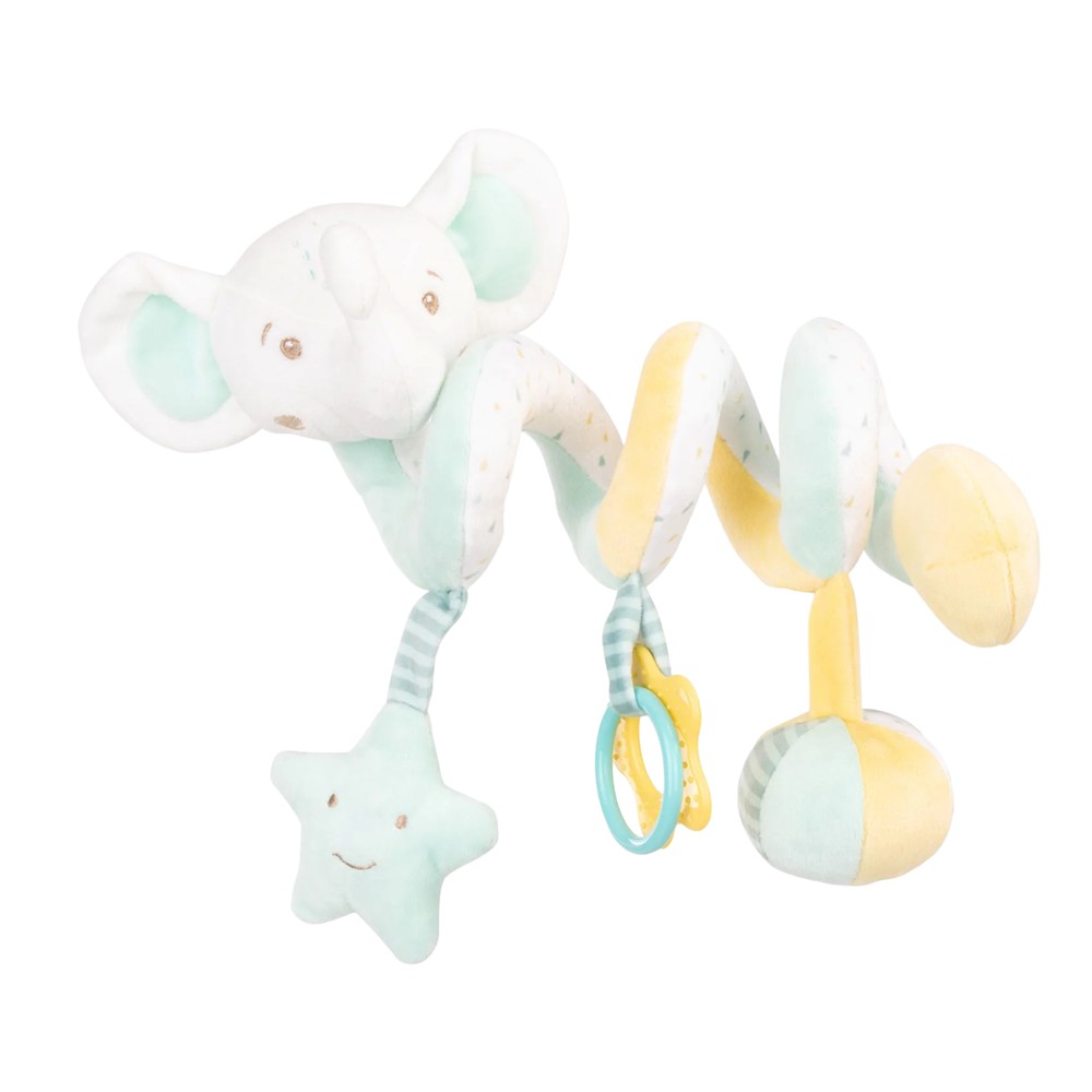 Add fun and softness to every walk with this Kikka Boo elephant stroller toy, perfect for hanging on a stroller, crib, or car seat. With a sweet design, relaxing mint color, and soft materials, this toy is designed to stimulate the senses and provide comfort to your baby while moving.