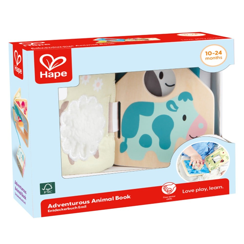 Baby toy, Hape, book of animals, wood, 14x14 cm, mixed, +10 months, 1 piece