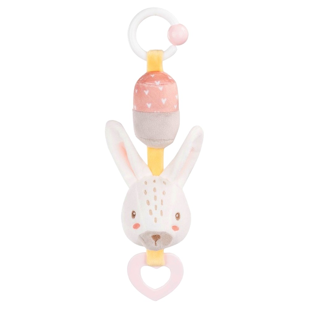 The toy is made of plush material, which is soft and safe for young children to play and explore. With a length of about 30 cm, it is easy for children to hold and have fun with this toy. The rabbit has different colors and visual elements that stimulate children's vision and interest.