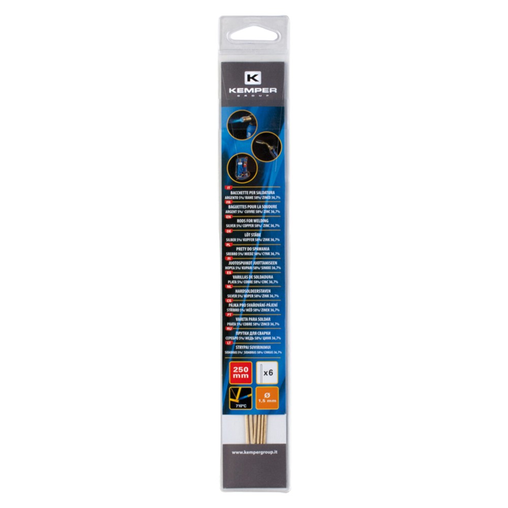 Copper and silver connectors 5% No. 6 pieces Length cm 25 Temperature connection °C 710 Strength N/mm2 390. Ø 1.5 mm. Suitable for quality brazing of non-ferrous alloys (iron - steel) and non-ferrous alloys (copper - bronze - bronze). Good processing flow.