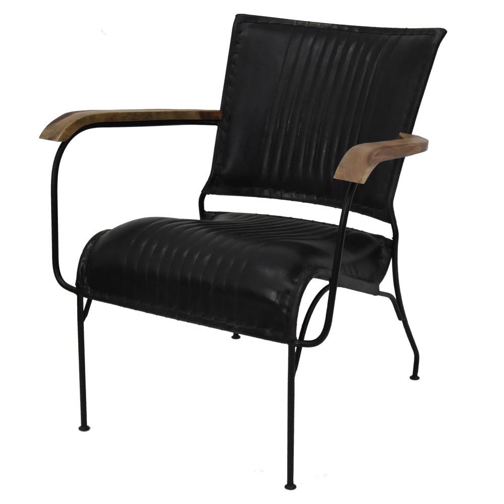 Bar chair, armrest, metal frame, leather seat, black, 65x75xH75 cm