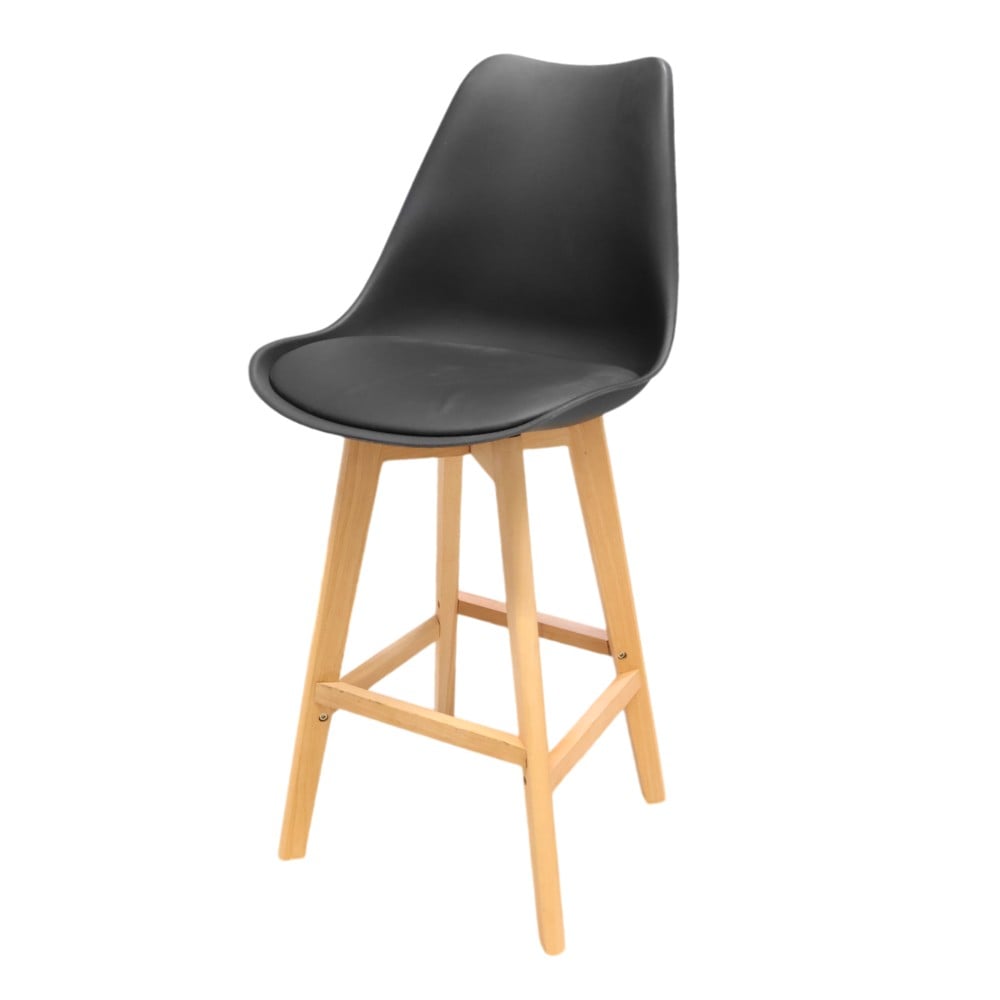The bar chair with dimensions 58x48x105 cm is an excellent piece of furniture that combines modern style with comfort of use. This chair comes with a polished polyurethane (PU) upholstery in an elegant and high-quality black color. Carefully crafted wooden legs ensure stability and durability for the chair. The PU upholstery is carefully polished and easy to clean, made to extend the chair's service life. The black color of the upholstery gives a sophisticated and refined touch to the environment, giving it a restrained and stylized look.