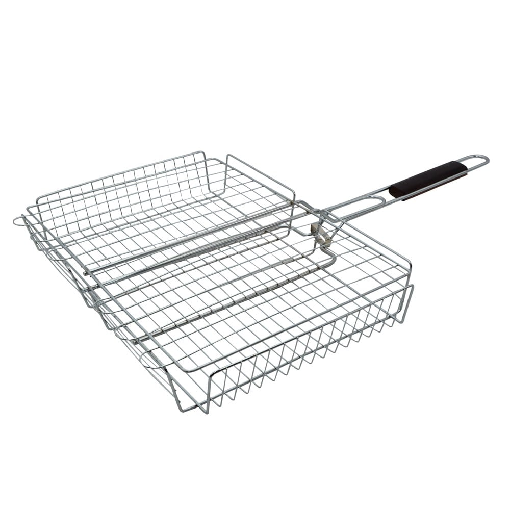 The chrome-plated double handle with wooden handle is ideal for foods such as fish and vegetables. There are 4 levels of fractions. The carrier has anti-adhesive surfaces and is easily cleanable. Dimensions 30x42 cm