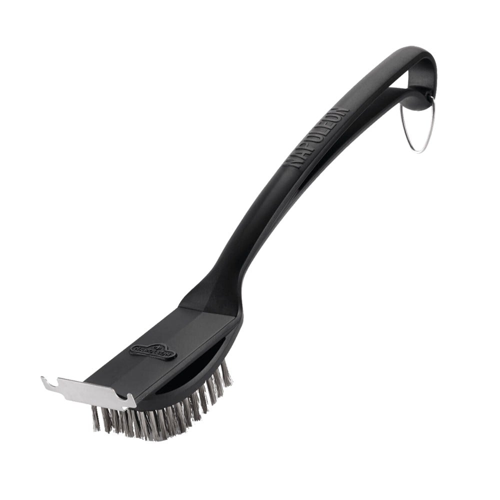 Cleaning brush for barbecue, with plastic and stainless steel handle, 50 cm in size. It is used to clean grease and burnt food residues from barbecues, grills, ovens and various cooking equipment. The handle has an ergonomic design which facilitates holding during use. This product is suitable for professional and non-professional use, at home, camping, picnic, etc.