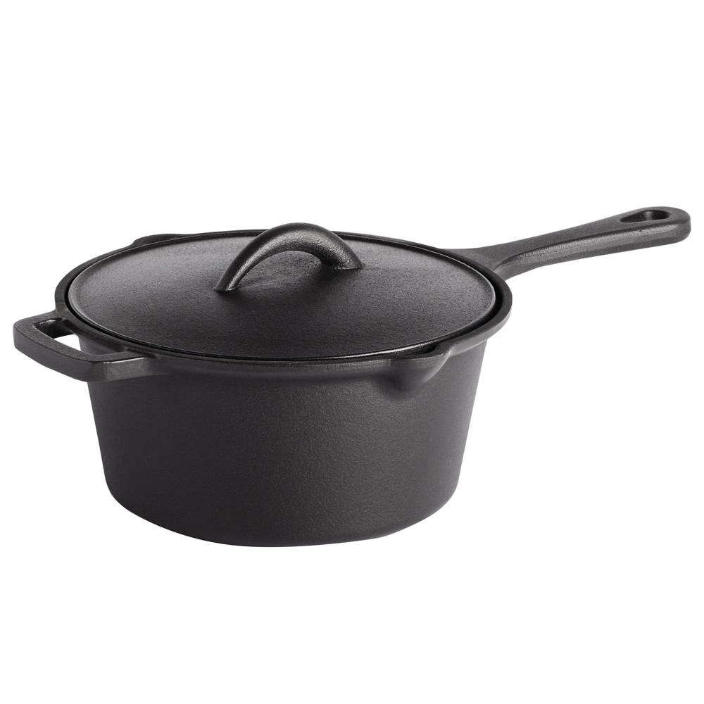 This pan with a lid made of cast iron material with a capacity of 2 liters is suitable for ensuring perfect cooking and warm food in barbecues and not only. With a diameter of 19 cm, this pan can be used for preparing sauces, stewing and frying without any problems. It can be used on charcoal, gas and oven barbecues.