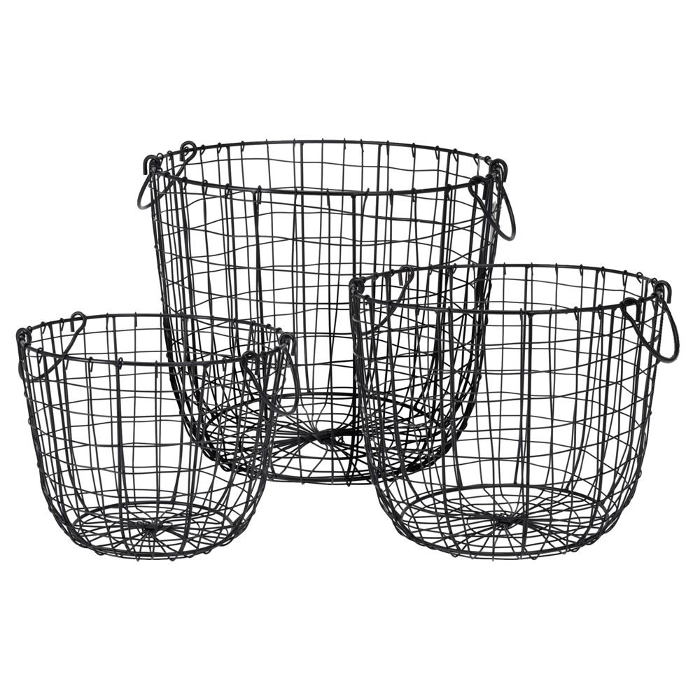The set of decorative metal baskets comes to you, meeting your decoration and storage needs. Produced in black metal material, this set is complete with three baskets of small, medium and large sizes. Give your home a modern look with this set of baskets.