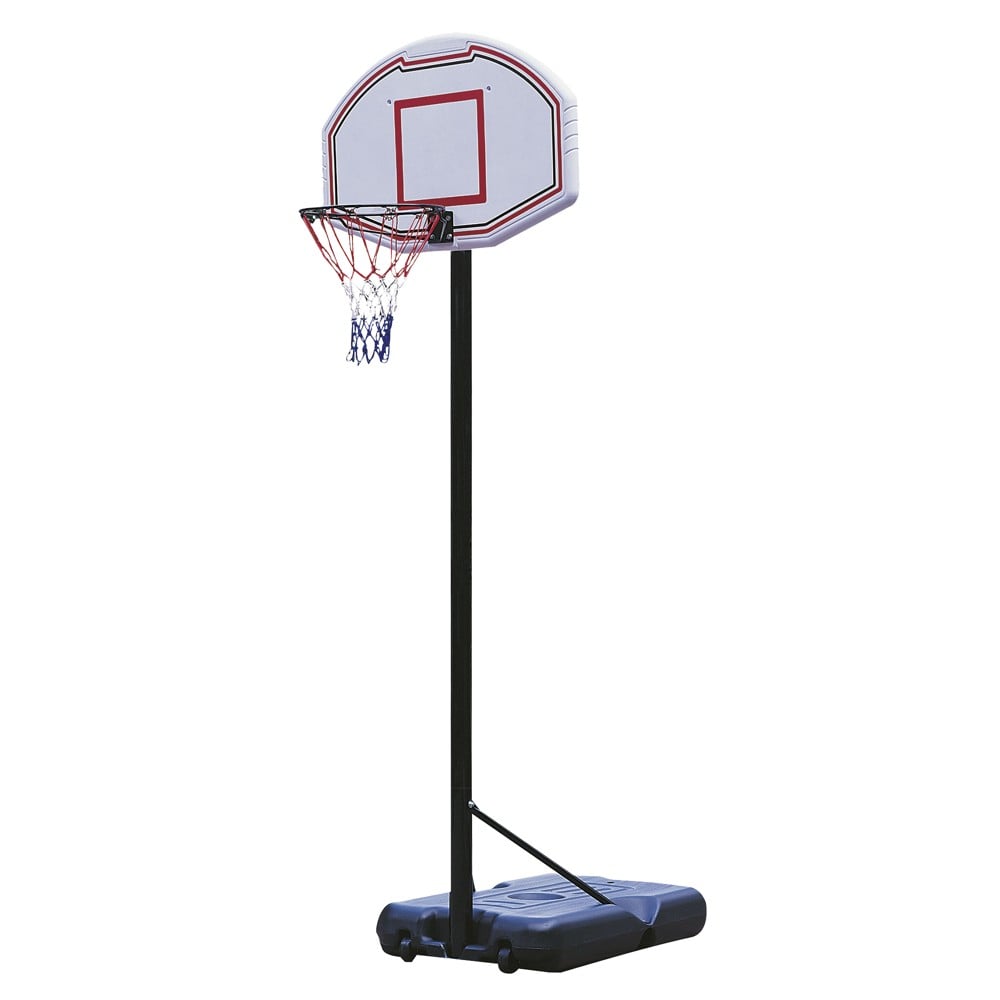 Adapted to children and adults who play basketball outside. Adjusts without tools from 2.27 to 3.05 m and moves easily thanks to the wheels