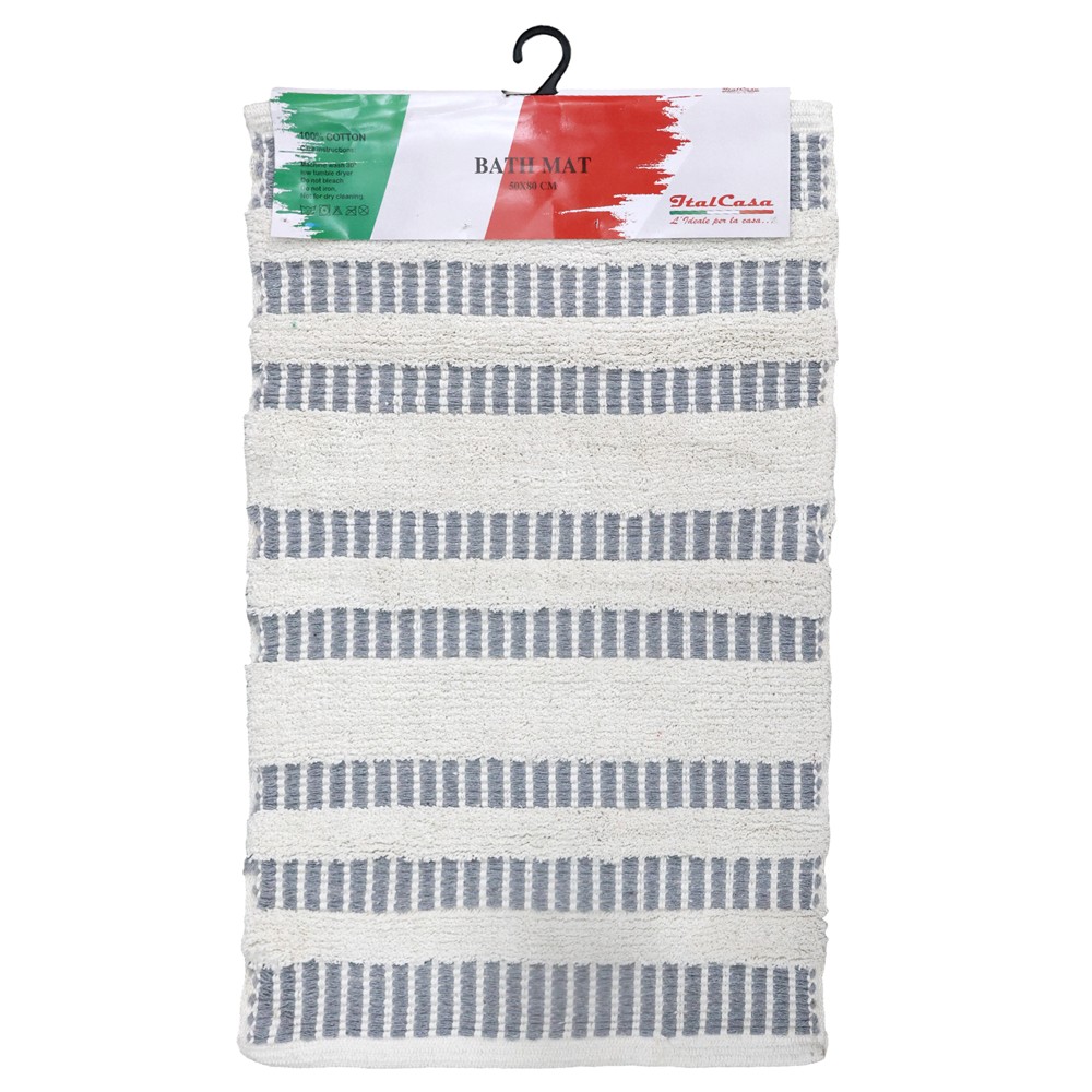Bath mat, cotton, striped, white/grey, 50x80 cm