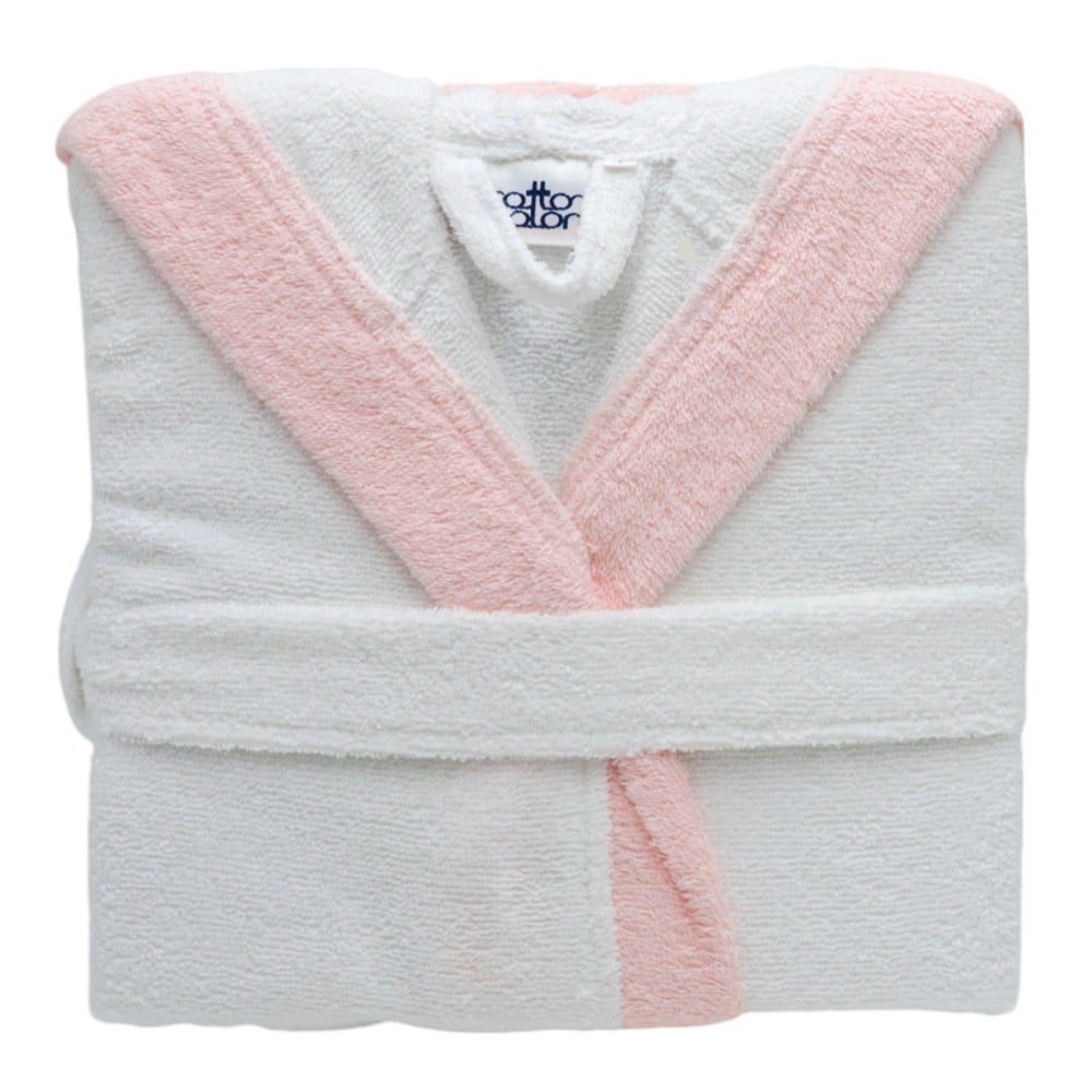 Bathrobe, for girls, cotton, white/pink, 350 gr (age 4 years)