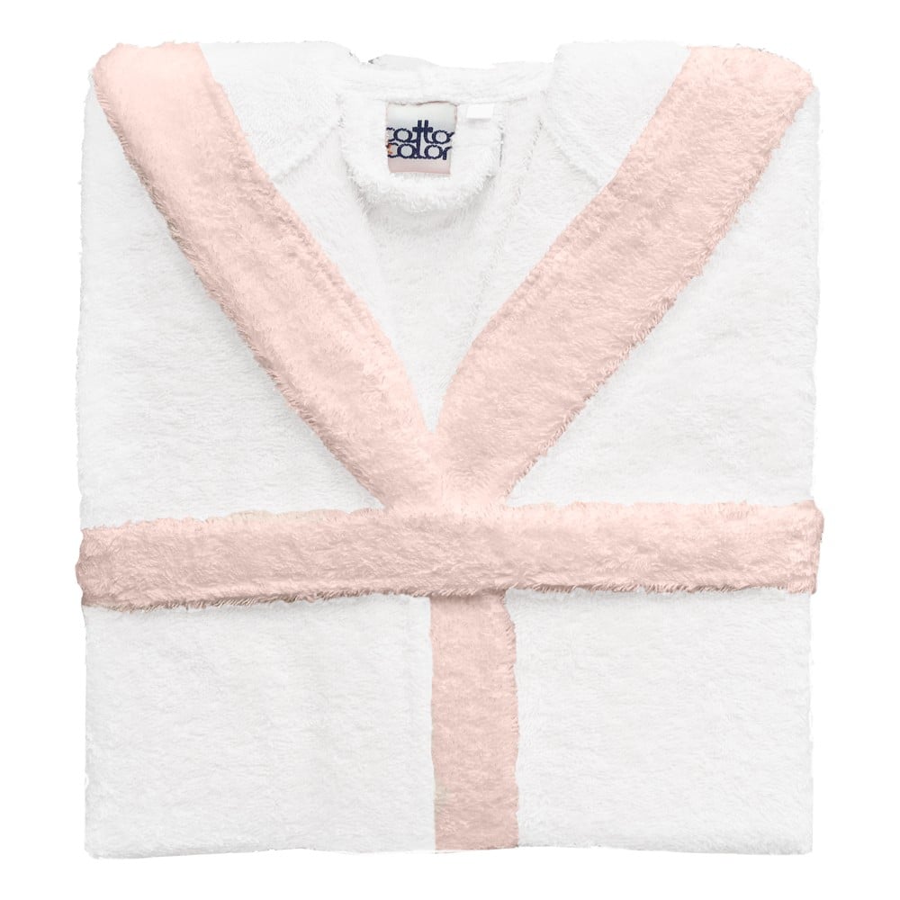 Bathrobe, for girls, cotton, white/pink, 350 gr (age 6 years)